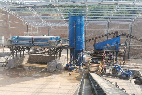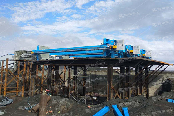 板框壓濾機(jī)是污水處理系統(tǒng)中的針對污泥處理的設(shè)備,其作用是將污水處理后的淤泥進(jìn)行壓濾,形成大塊濾餅(泥餅),以便排除。由于板框壓緊,淤泥無法外溢,在螺桿泵和隔膜泵的高壓之下,淤泥中的水分由濾布中滲出,流入回水管,而泥餅則留在了空腔中,之后板框卸壓,濾板拉開,泥餅靠重力落下。