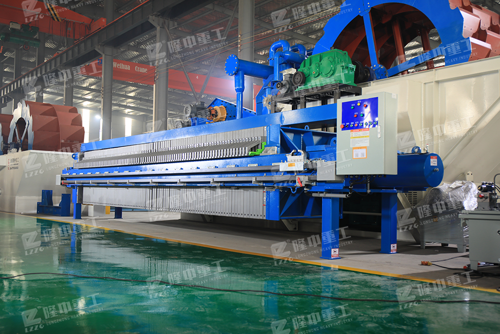 廂式壓濾機(jī)是利用濾布兩邊的壓力差,迫使物料中的J大部分水分透過(guò)濾布,流出機(jī)體外,而物料被阻隔在濾室內(nèi)形成濾餅,以達(dá)到過(guò)濾的目的。由于在過(guò)濾過(guò)程中濾布兩邊存在著較大的壓力差,提高了過(guò)濾速度降低了濾餅的含水率。